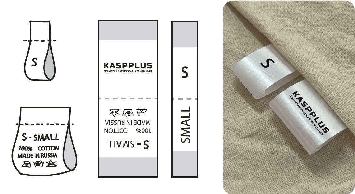 - Удобна для размещения размеров, состава ткани, рекомендаций по уходу.