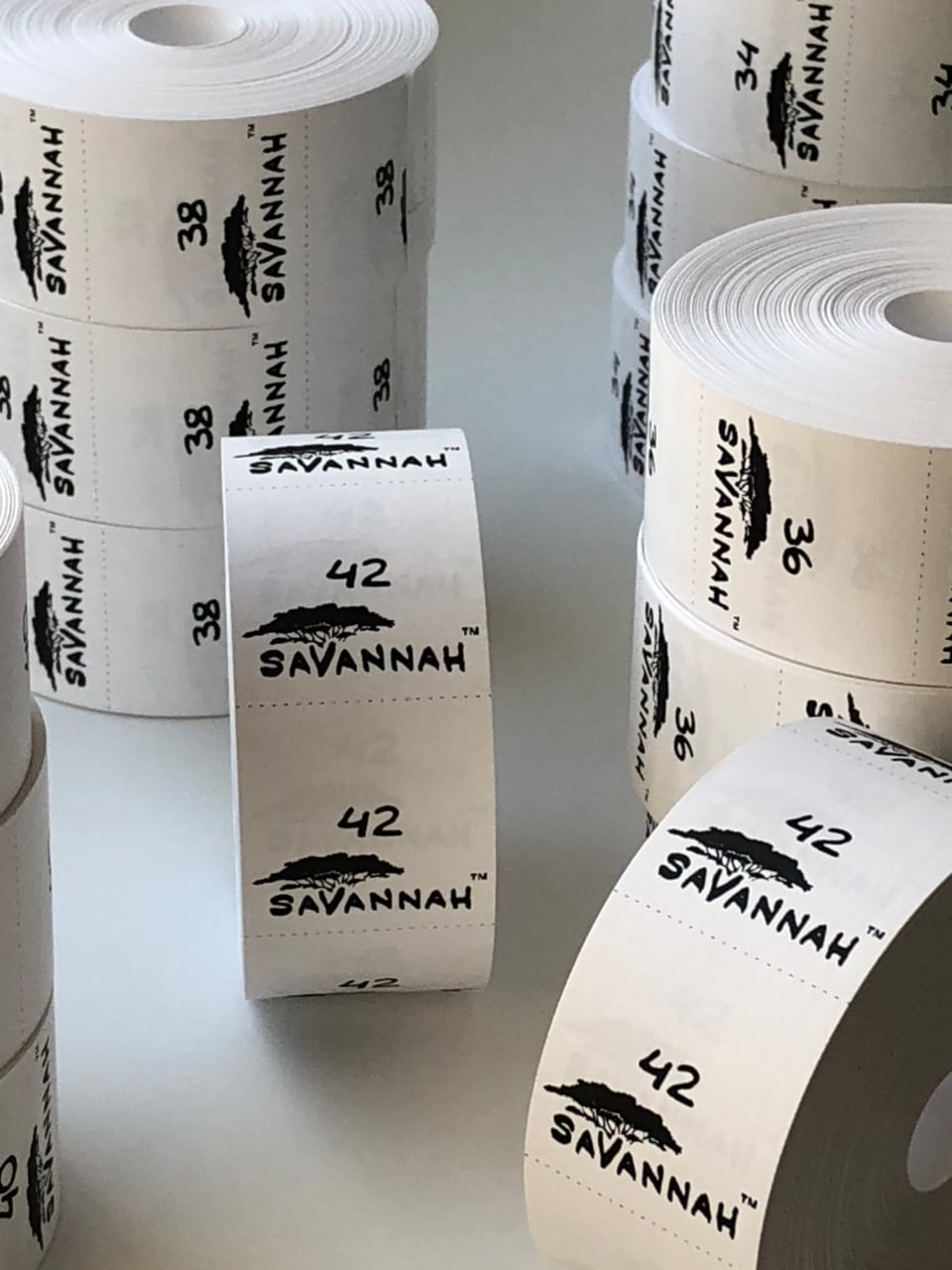 Используется для печати вшивных этикеток и бирок на одежде, постельном белье, полотенцах, аксессуарах. На ленту наносят логотипы, состав, размер, производителя, правила ухода. Подходит для изделий премиум-сегмента. Печать: термотрансфер, шелкография, роторная печать, сублимация.